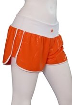Blanc,Noir,Rose,Bleu Ciel,Orange,Bleu R Short en vinyle blanc brillant légèrement stretch avec Blanc, Noir et Kaki. Tailles disponibles: S,M,L