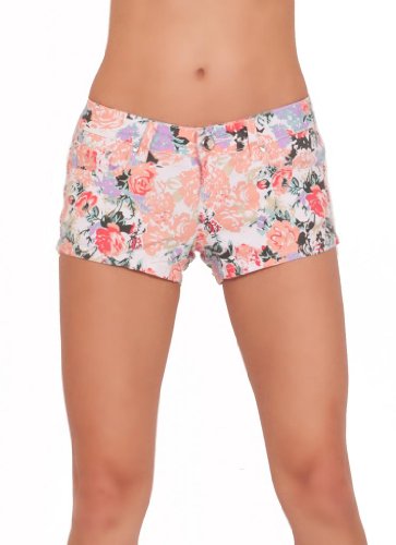 Shorts occasionnels adaptés courts extensibles micro floraux d'été de Bootie Mini Denim Hipster Boyshorts Stretchable, PURPLE CORAL GARDEN 20 Large